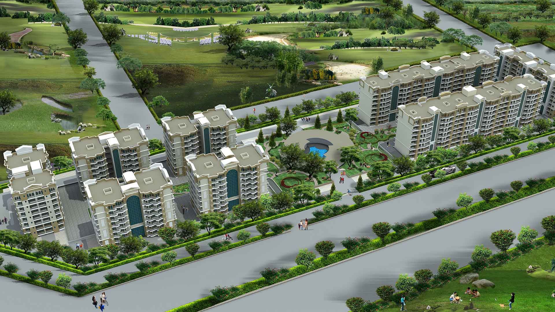 A modern gated housing in Naya Raipur offering varied homes with green areas, amenities and essentials services.
