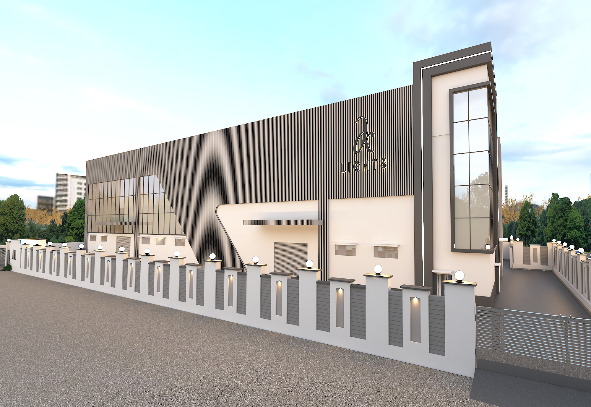 The Industrial project for DK Lights is set on a 3080 sqm and features a double-storey Pre-Engineered Steel Building (PEB) with a mezzanine, designed to withstand a load of 1 tonne per sq.m. The facility offers fully equipped PEB shed for industrial use, complemented by a RCC block designed for office space. Built to last for a minimum of 50 years, the structure is designed with a sturdy framework and high-quality civil work to ensure strength and durability. The facility is also strictly designed to comply with Vastu principles, ensuring a harmonious and balanced working environment.