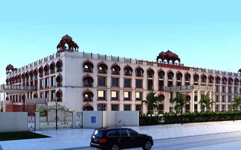 The palace is a 5.8-acre property uniquely located at the centre of city Sardarshehar. Idea is to create a luxury boutique hotel with 100 rooms in the context of Rajasthani architecture but with a touch of modern interiors. This has been translated into a project where there is a dialogue between the old and the new. Luxury was about being authentic both in terms materials and workmanshipand in providing visitors a tactile and sensual experience within the historical context of the state Rajasthan without aping the old. The major materials been used are Dholpur stone & Jodhpur sandstone for thermal performance as well as aesthetic agglomeration of the building with the surrounding.