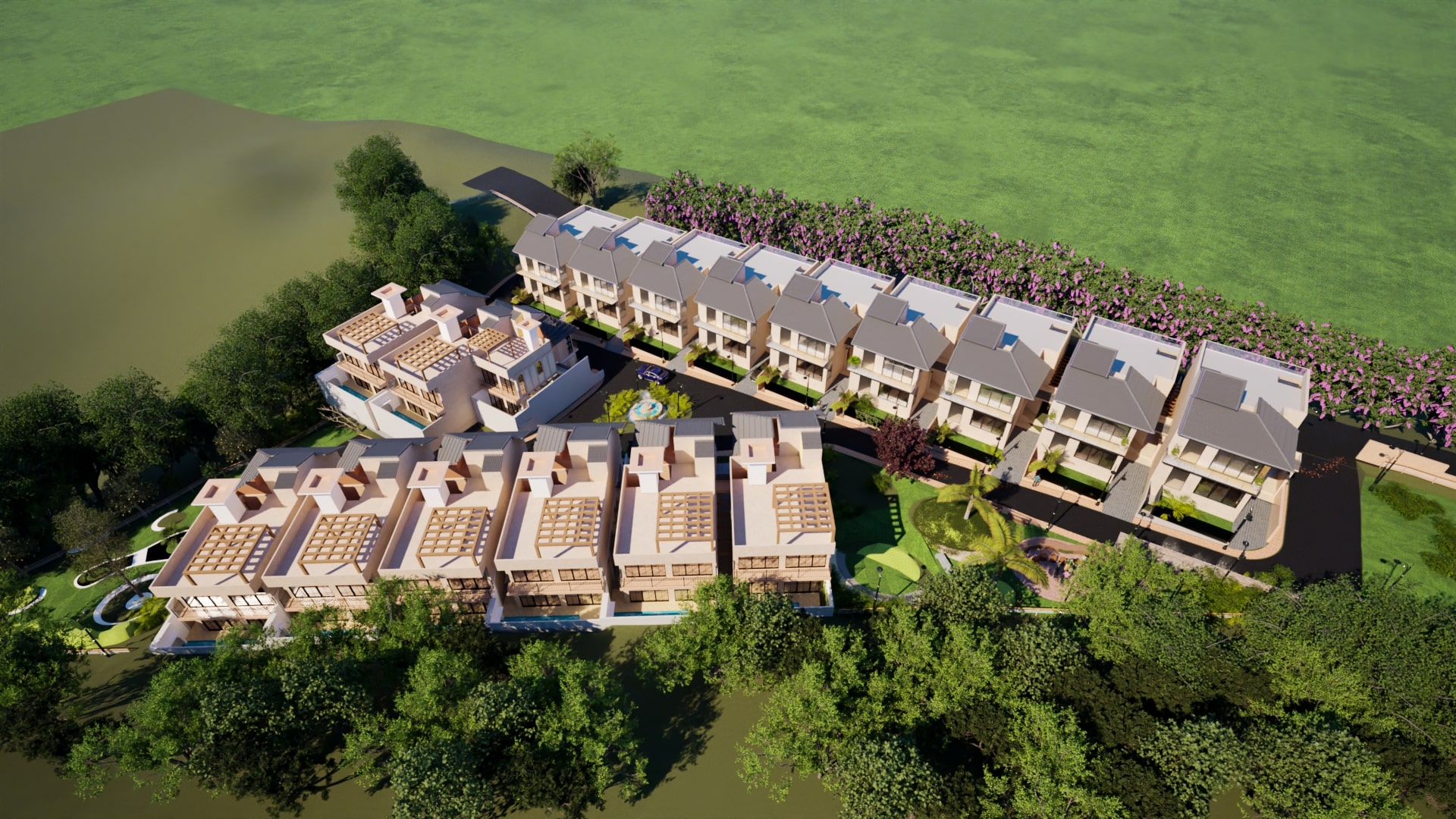 Aqua Palm Villa is a luxurious residential retreat that epitomizes elegance, comfort, and contemporary design. Set amidst lush greenery and serene surroundings, the villa is thoughtfully planned to offer a seamless blend of modern architecture and natural beauty. Featuring spacious living areas, landscaped gardens and premium amenities, Aqua Palm Villa provides an exclusive lifestyle experience defined by sophistication and tranquility. The structure is built with high-grade materials and superior civil work, ensuring strength, durability and long-term sustainability. Designed in accordance with Vastu principles, the villa promotes harmony, balance and positive energy throughout the space. Aqua Palm Villa stands as a symbol of refined living—where architectural excellence meets the serenity of nature.