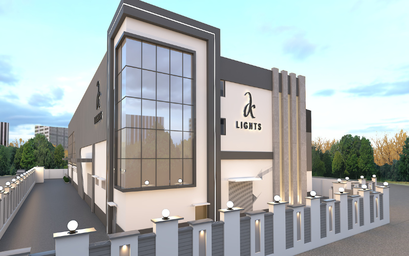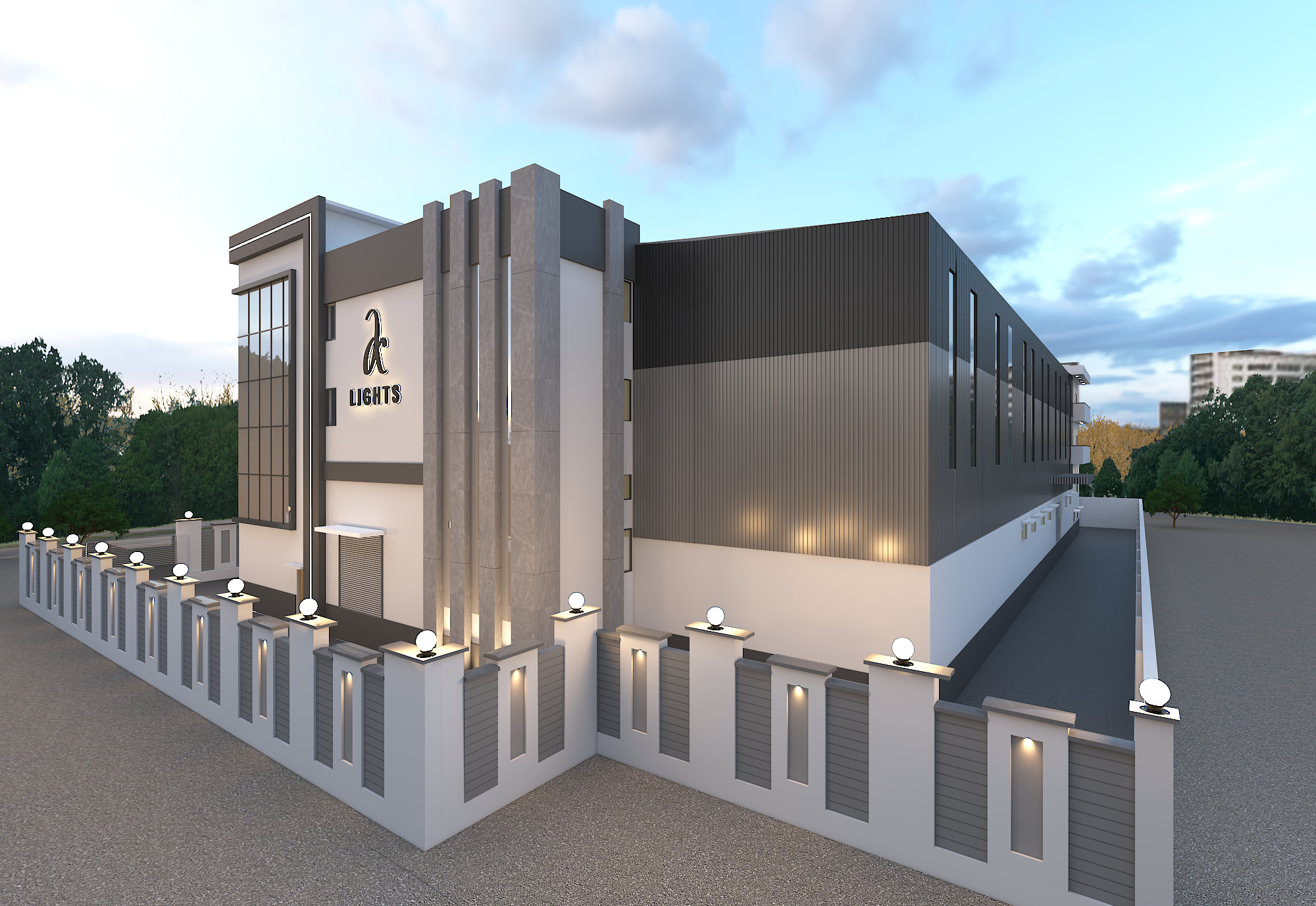 The Industrial project for DK Lights is set on a 3080 sqm and features a double-storey Pre-Engineered Steel Building (PEB) with a mezzanine, designed to withstand a load of 1 tonne per sq.m. The facility offers fully equipped PEB shed for industrial use, complemented by a RCC block designed for office space. Built to last for a minimum of 50 years, the structure is designed with a sturdy framework and high-quality civil work to ensure strength and durability. The facility is also strictly designed to comply with Vastu principles, ensuring a harmonious and balanced working environment.